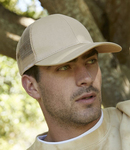 100% organic cotton front panel and peak. Polyester mesh rear panels.6 panel.Structured front panels.Pre-curved peak.Snapback size adjuster.Tear out label.